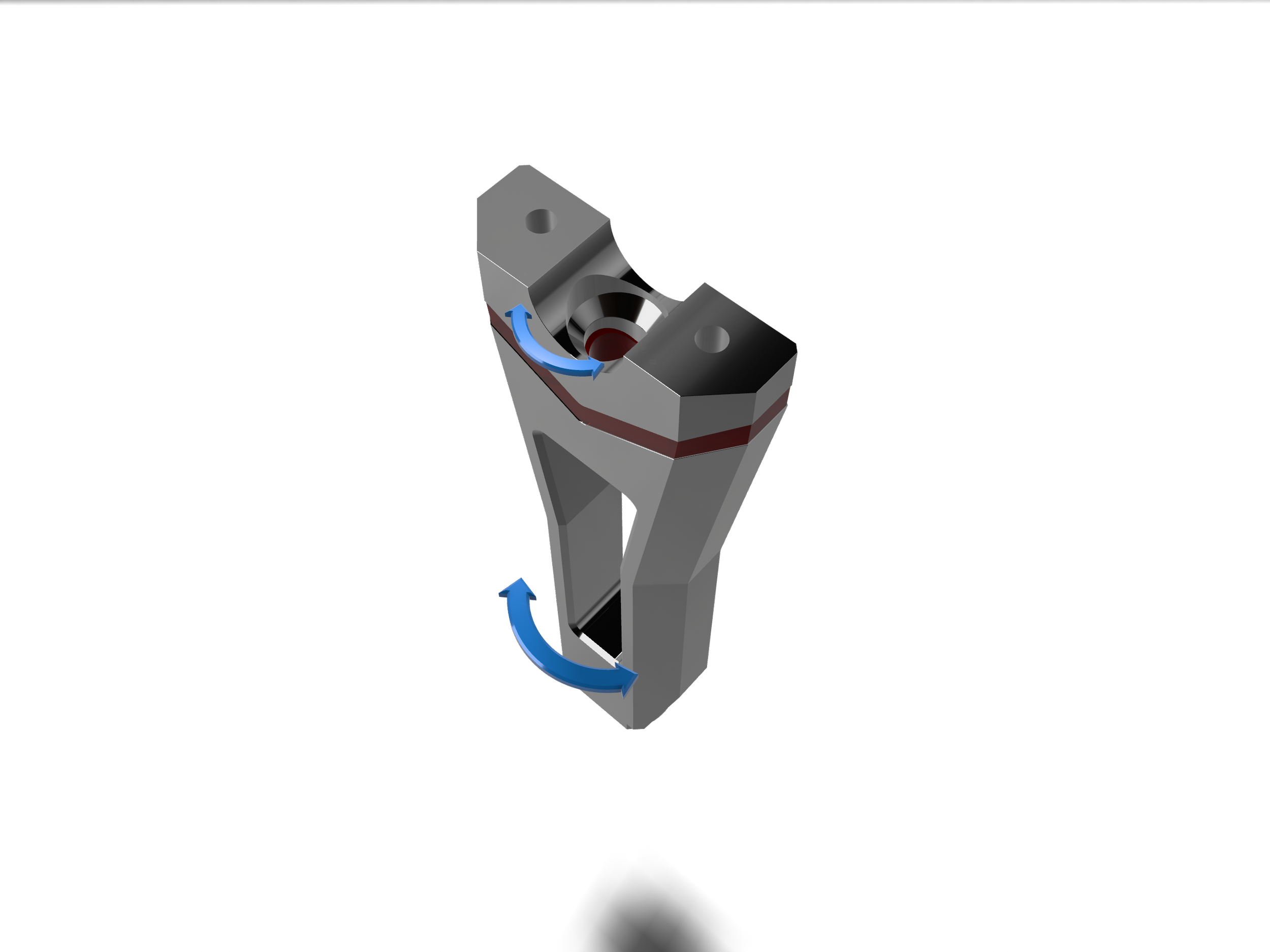 Our V.E.E. Tech allows for better cornering through rotational deflection. This means that when you hit a bump in the road while cornering, the V.E.E. Polymer will flex slightly, then return to position. The twisting movement of your wheel is dampened by the VEE and you receive less movement at the bars. This small amount deflection allows for smooth tracking of your front tire through a corner.
